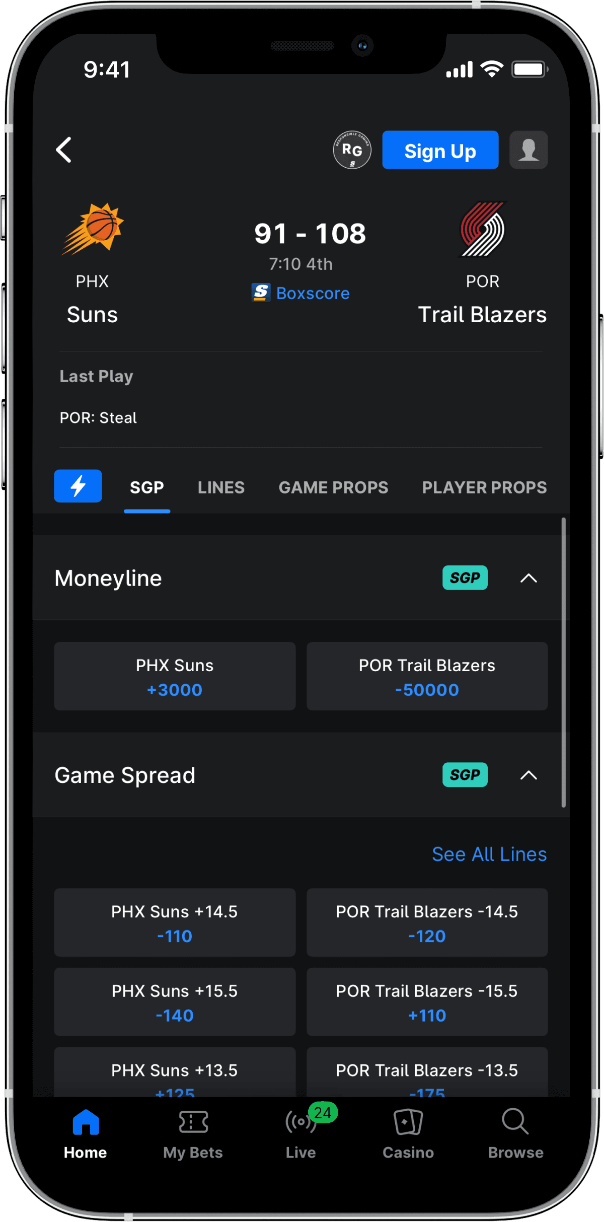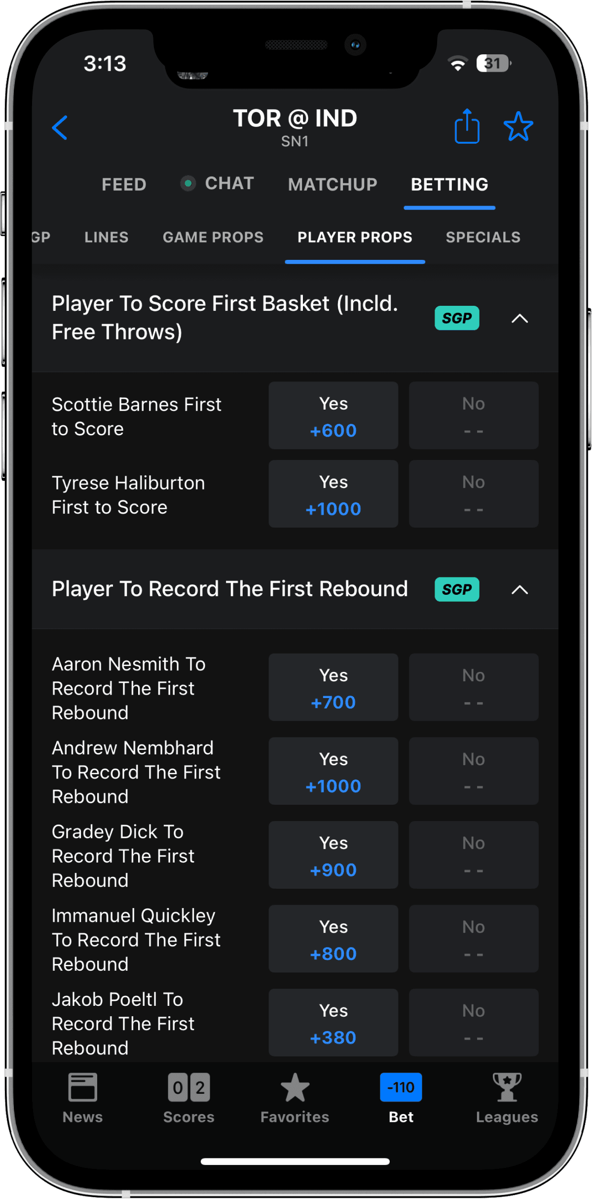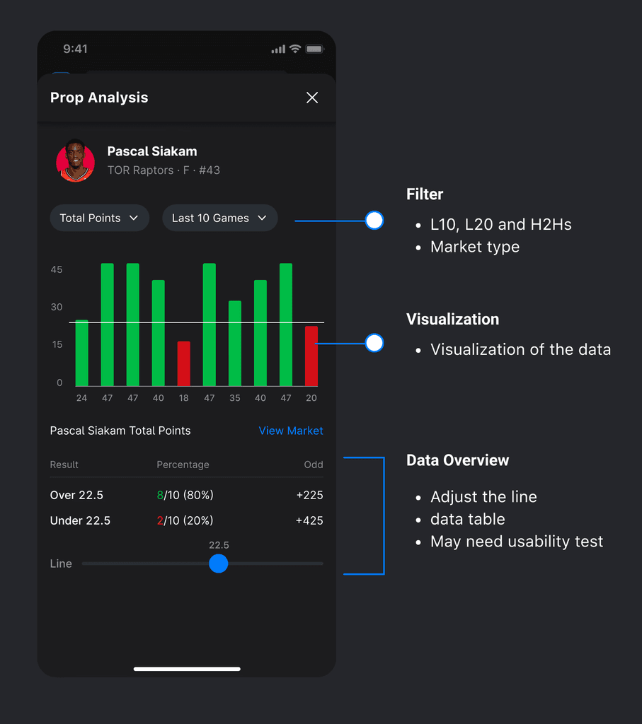 As a team that lives between the sports app and bet app, our vision is showcase the offerings of our bet app and help betting-curious users have a easy discovery and transition into sports betting. Therefore, we introduced betting market touch points across the sports app.