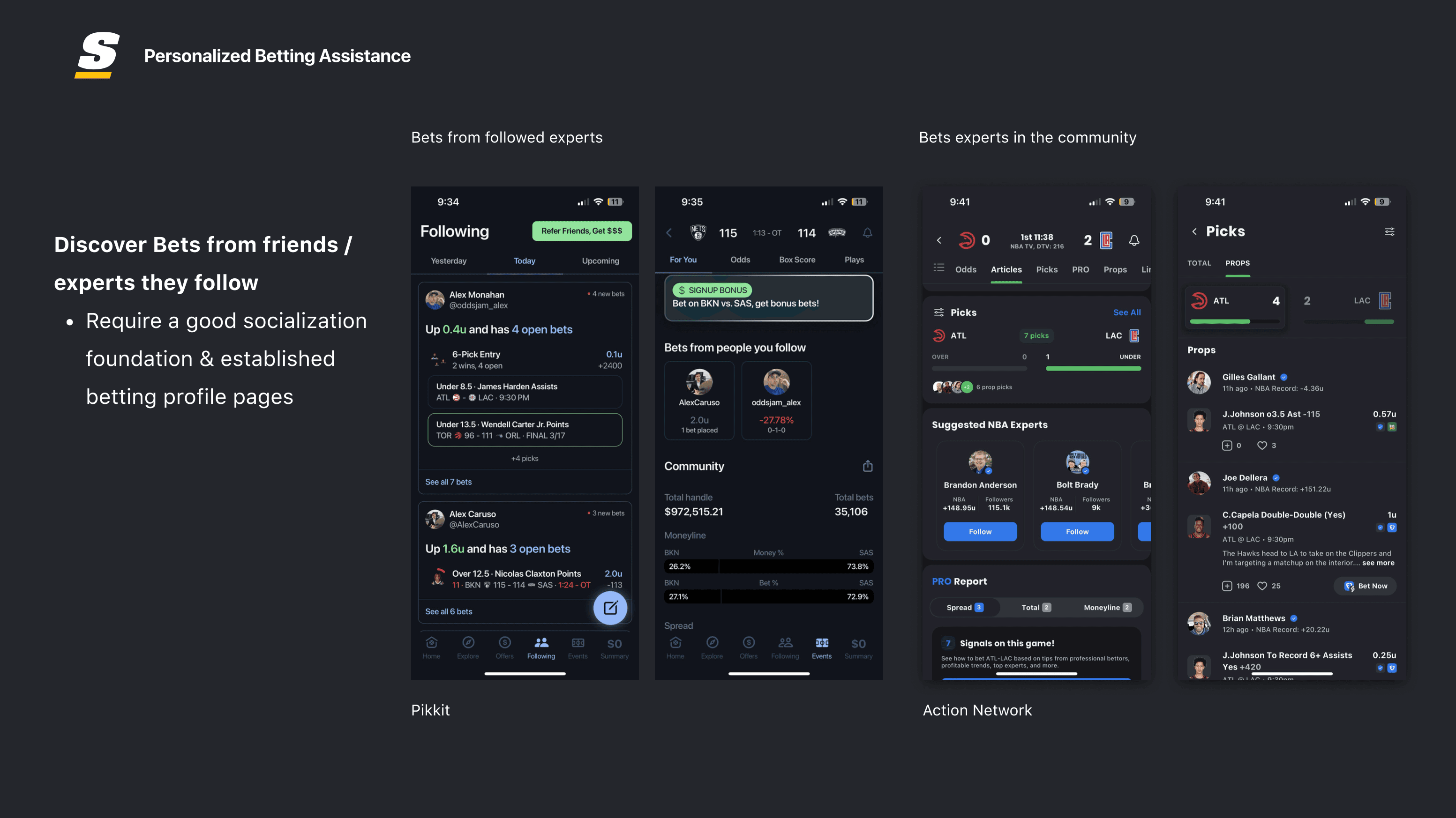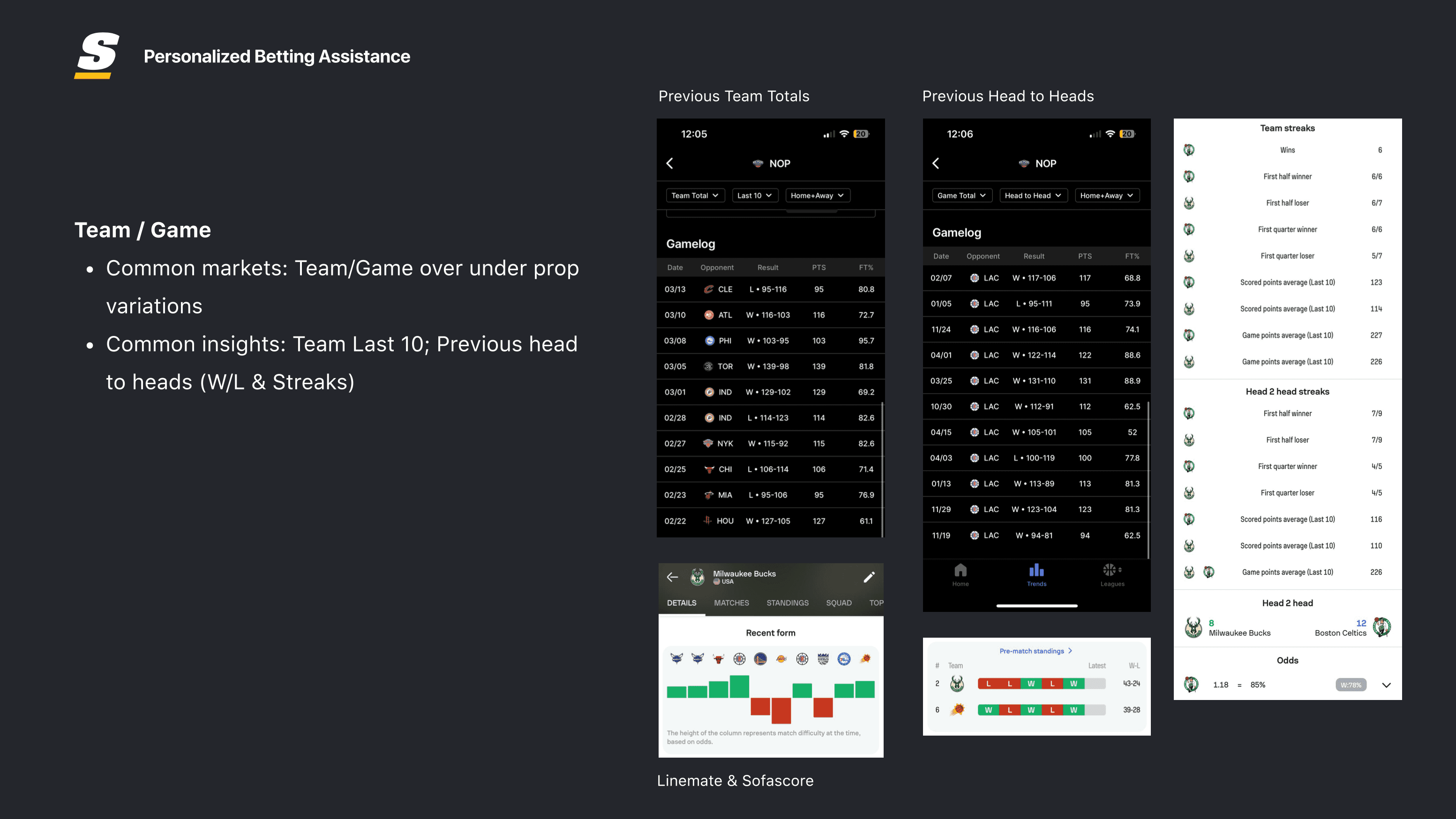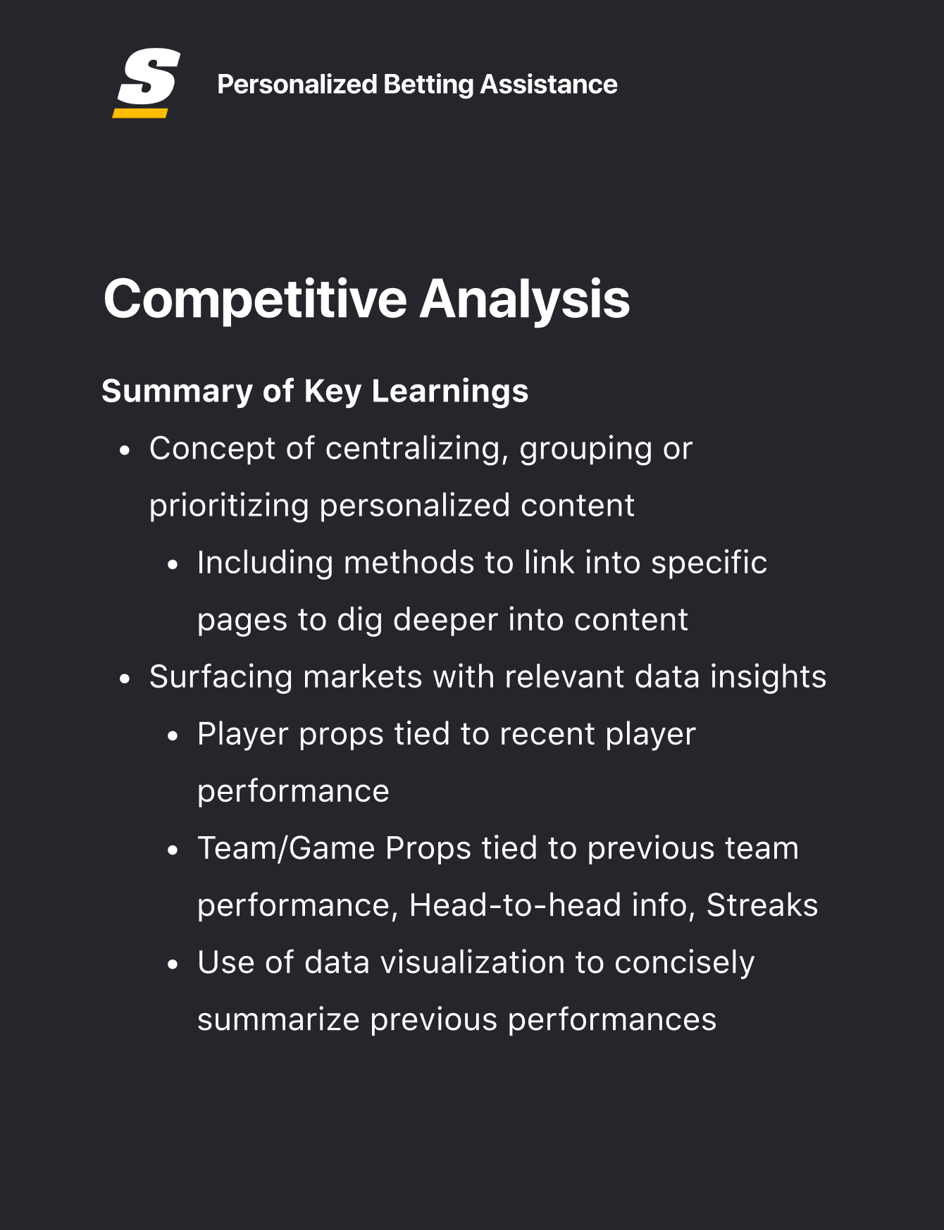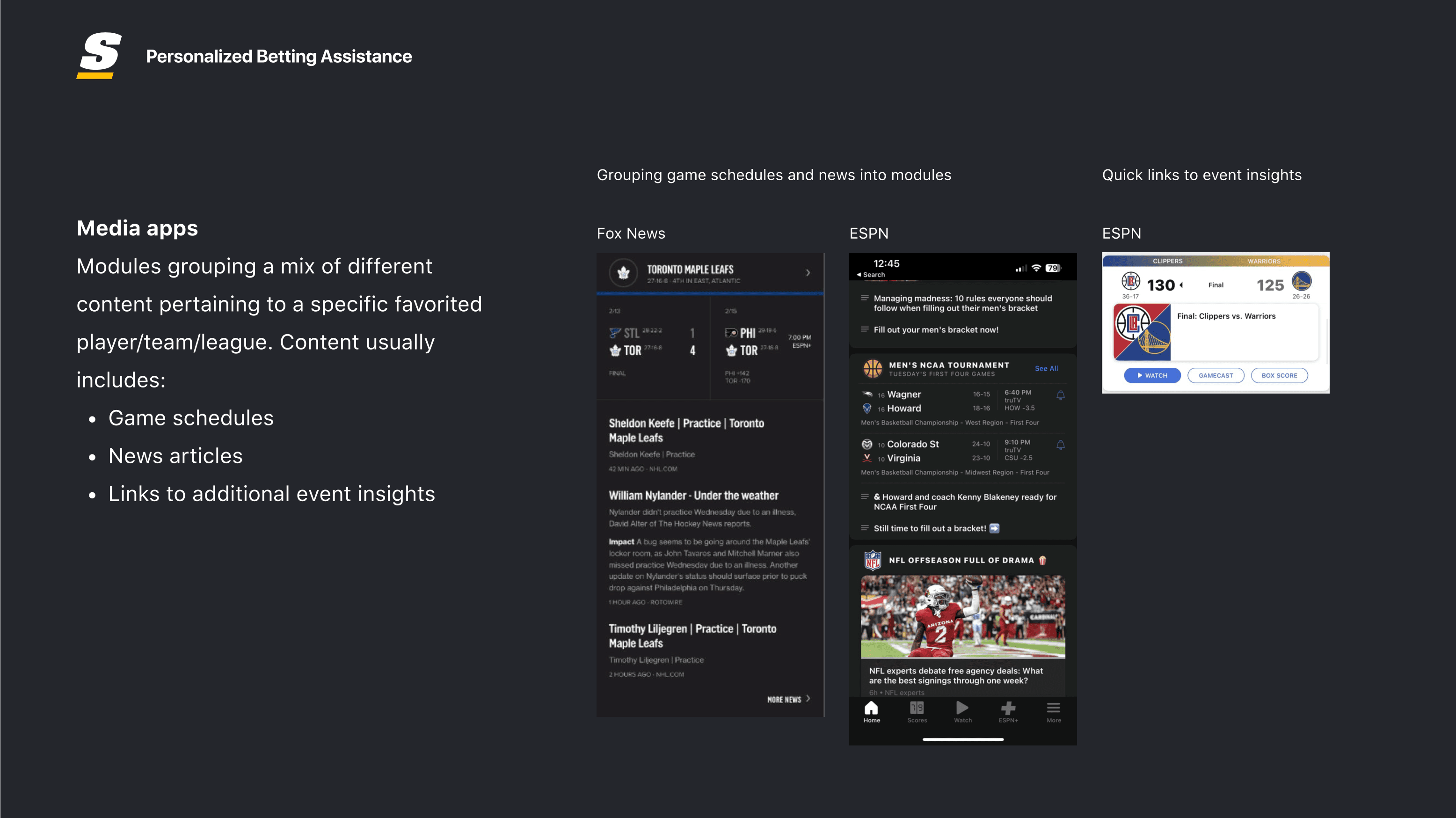 As a team that lives between the sports app and the bet app, our vision is to showcase the offerings of our bet app and help betting-curious users have a easy discovery and transition into sports betting. Therefore, we introduced betting market touch points across the sports app.