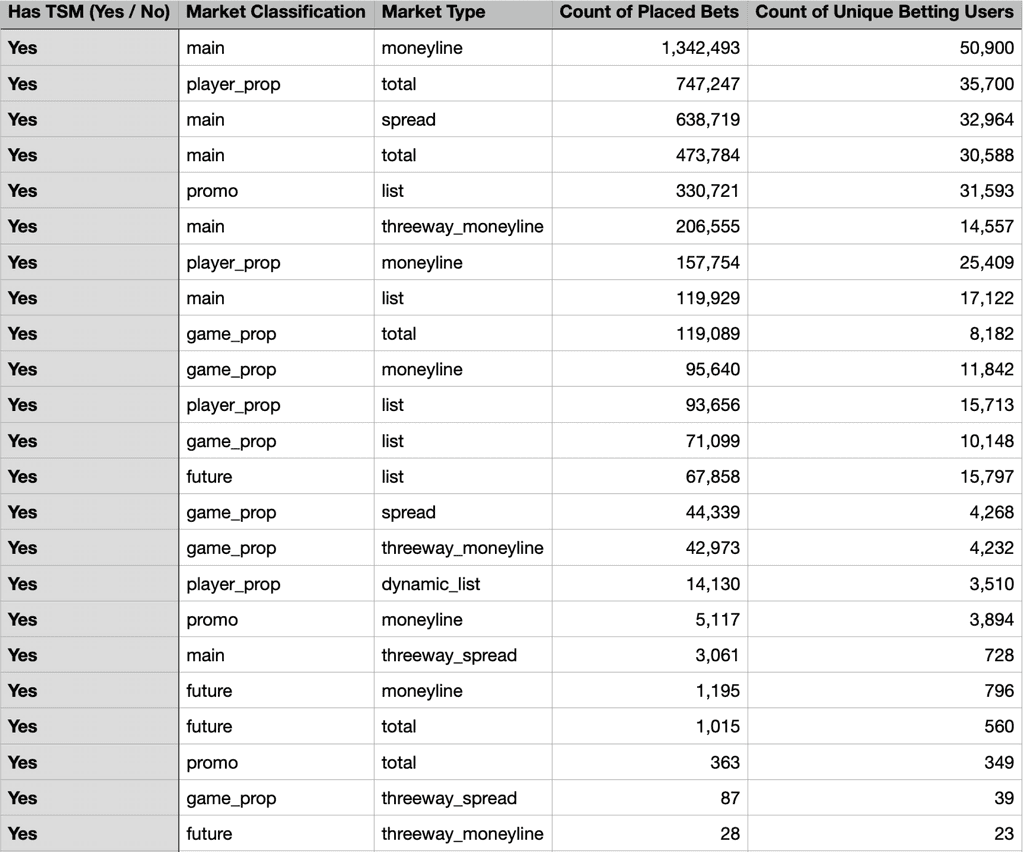 These bet markets in the TSM app have a poor user engagement rate, therefore failing to acquire new betting users or to encourage betting activities behaviors.